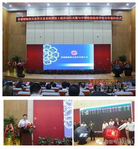 10月18日下午,景德鎮(zhèn)陶瓷交易所交易系統(tǒng)模擬上線(xiàn)啟動(dòng)儀式暨與中國(guó)檢驗(yàn)檢疫學(xué)會(huì)合作簽約儀式在景德鎮(zhèn)中國(guó)陶瓷博物館舉行。中國(guó)檢驗(yàn)檢疫學(xué)會(huì)會(huì)長(zhǎng)、質(zhì)檢總局原副局長(zhǎng)魏傳忠,江西檢驗(yàn)檢疫局副局長(zhǎng)劉海葆等領(lǐng)導(dǎo)出席了儀式。景德鎮(zhèn)檢驗(yàn)檢疫局副局長(zhǎng)張和貴代表景德鎮(zhèn)市檢科院與景德鎮(zhèn)陶瓷交易所簽署合作協(xié)議。