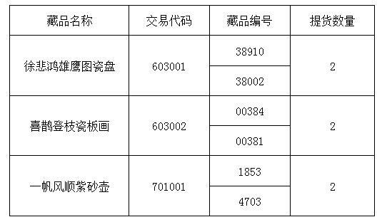 2016144關(guān)于交易藏品《徐悲鴻雄鷹圖瓷盤》等提貨公告