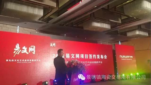 2016年11月26日,景德鎮(zhèn)陶瓷交易所和易文網(wǎng)達(dá)成戰(zhàn)略合作,項目簽約發(fā)布會隆重召開,景德鎮(zhèn)陶瓷交易所執(zhí)行董事周雪淞參加發(fā)布會并發(fā)表講話。