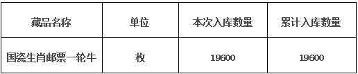 應(yīng)發(fā)行會員申請,《國瓷生肖郵票一輪牛》已經(jīng)于2016年11月26日至2016年11月28日辦理景德鎮(zhèn)陶瓷交易所托管中心入庫手續(xù),檢驗簽證工作正在進行。現(xiàn)將托管入庫結(jié)果公布如下:
